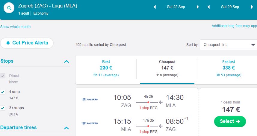 Istekao: Air Serbia: Malta za samo 147€ (povratna) June 19, 2018 Aviokarte, Evropa Destinacije: Malta Razdoblje putovanja: 09/2018 – 10/2018 Razdoblje kupnje: do 30.6. ili do prodaje slobodnih mjesta Avio kompanija: Air Serbia Prtljaga: uključena ručna prtljaga Primjer izravnih letova: Zagreb – Malta 147€ Hotelski smještaj: >>>BOOKING.COM<<< Leave a Reply Cancel Reply Your email address will not be published.CommentName* Email* Website