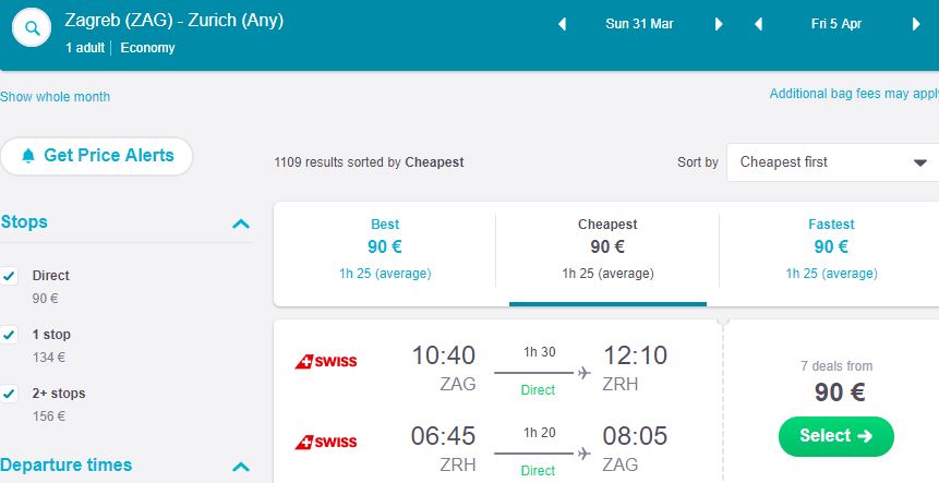Zagreb – Zürich 90€