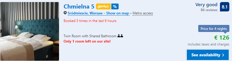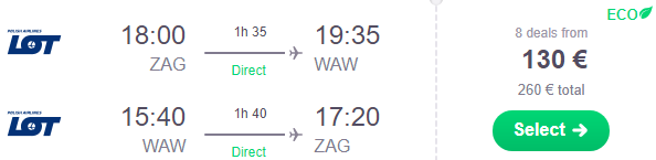 Varšava city break: povratne avio karte iz Zagreba + 4 noćenja već od 193€/osobo February 20, 2019 Aviokarte, Evropa Četiri dana u Varšavi! Povratne avio karte iz Zagreba + 4 noćenja možete kupiti već od 193€ po osobi! Destinacije: Varšava, Poljska Razdoblje putovanja: 07/06/2019 – 11/06/2019 Razdoblje kupnje: do prodaje slobodnih mjesta Avio kompanija: LOT Polish Airlines Prtljaga: uključena ručna prtljaga Primjer leta (2 osobi): Zagreb – Varšava 130€ 07/06/2019 – 11/06/2019 Primjer smještaja za termin 07/06/2019 – 11/06/2019: Hotel Chmielna 5 126€/2osobi (privat, s besplatnim .genius popustom) >>OVDJE<< možete naći još slobodnih smještajnih kapaciteta. Zajedno: 260€ + 126€ = 193€/osobo (iz Zagreba) Leave a Reply Cancel Reply Your email address will not be published.CommentName* Email* Website