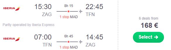Još uvijek Tenerife: povratne avio karte iz Zagreba + 7 noći već od 252€/osobo January 9, 2019 Aviokarte, Evropa Još uvijek jeftino na Tenerife: povratne avio karte iz Zagreba + 7 noćenja možete kupiti već od 252€/osobo! Destinacije: Tenerife, Španjolska Razdoblje putovanja: 19/02/2019 – 26/02/2019 Razdoblje kupnje: do prodaje slobodnih mjesta Avio kompanija: Vueling Prtljaga: uključena ručna prtljaga Primjer leta (2 osobi) za termin 19/02/2019 – 26/02/2019: Zagreb – Tenerife 168€ Primjer smještaja za termin 19/02/2019 – 26/02/2019: EcoHostal Finca Serena 168€/2osobi (hostel, privat soba 266€) >>OVDJE<< možete naći još slobodnih smještajnih kapaciteta. Zajedno: 336€ + 168€ = 252€/osobo (hostel) Leave a Reply Cancel Reply Your email address will not be published.CommentName* Email* Website